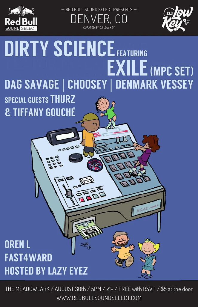 Red Bull Sound Select Presents:Denver Featuring Dirty Science ft. Exile (MPC Set),Dag Savage,Choosey,Denmark Vessey with Special Guests Thurz & Tiffany Gouché,Oren L,Fast4Ward Hosted by DJ Lazy Eyez